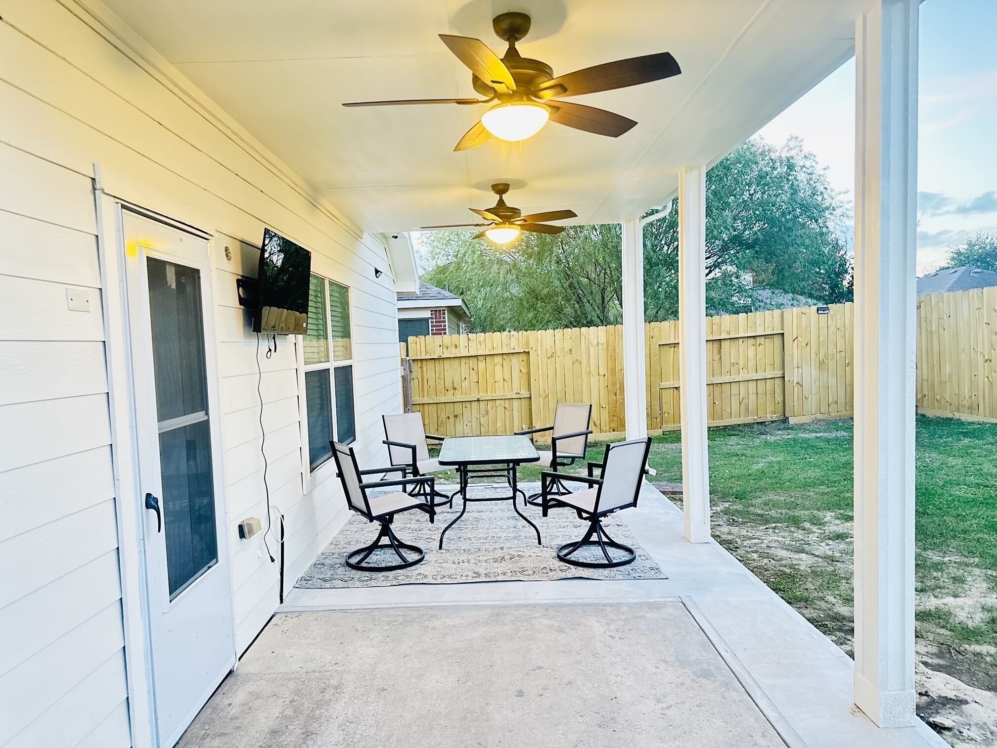 Unwind in the large private backyard, complete with a patio, grill, and outdoor seating. Perfect for sipping your morning coffee or enjoying a warm Texas evening under the stars.